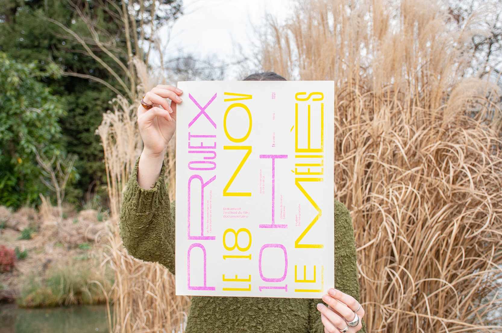 Série d'affiches sans visuel narratif pour bousculer les codes du documentaire : grille verticale, fonte variable et tensions graphiques au service de l'imaginaire. Résultat : un système visuel cohérent, sensible et conceptuel, affirmant une approche singulière du design d'affiche.